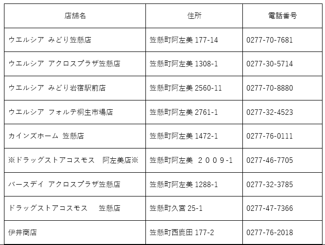 ※について、「ドラッグストアコスモス 阿左美店」が指定店に追加となりました。
